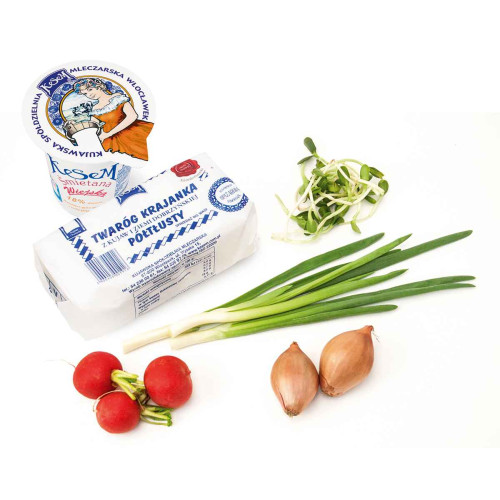 W naszym sklepie kupujesz tylko produkty mleczne które stanowią bazę do wykonania przepisu z inspiracji. Pozostałe produkty jak jajka, mąka, warzywa czy owoce kupujesz w lokalnym sklepie we własnym zakresie.